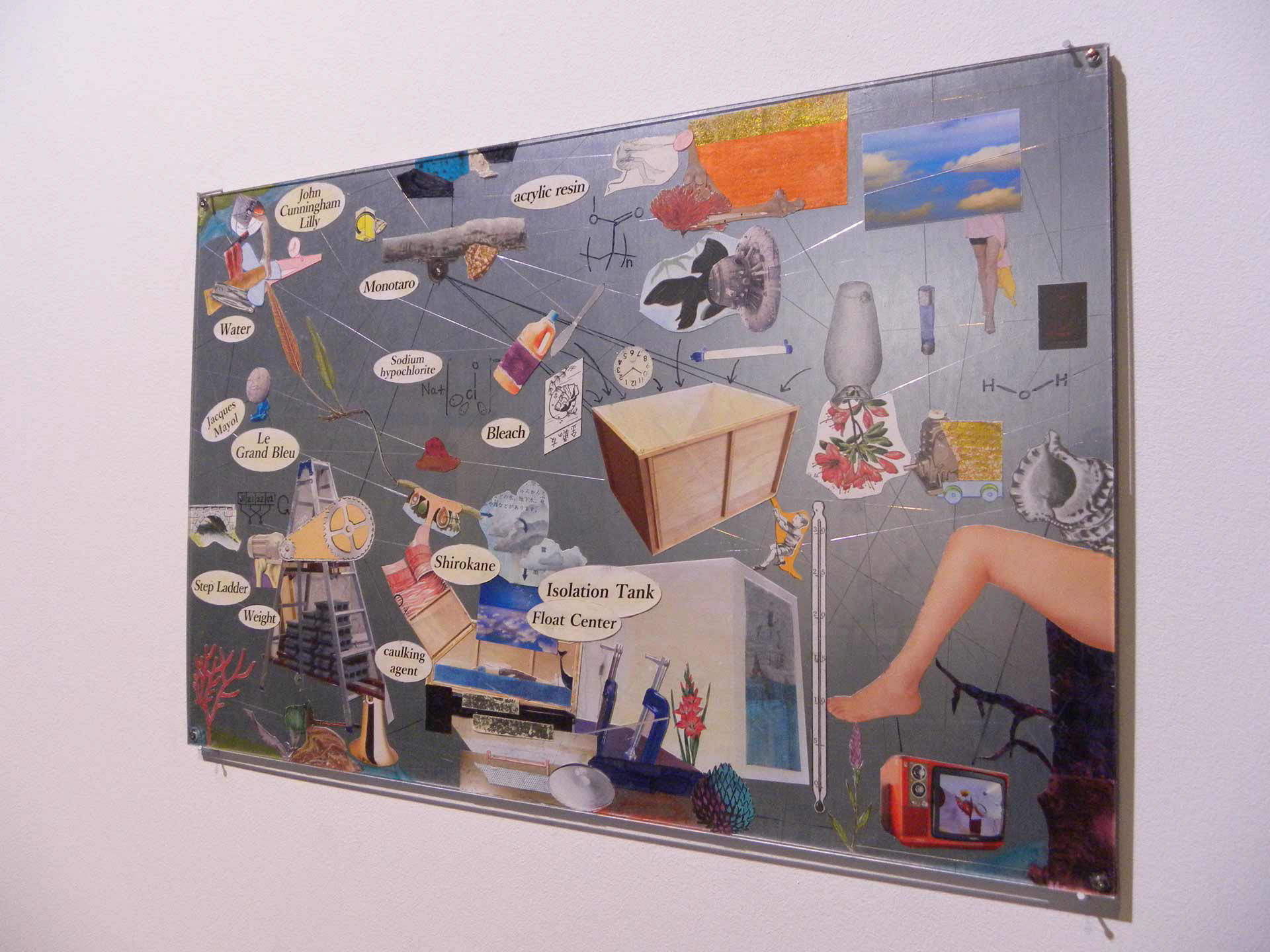 アルミ複合板にコラージュ、インク、アクリル板、ボルトナット